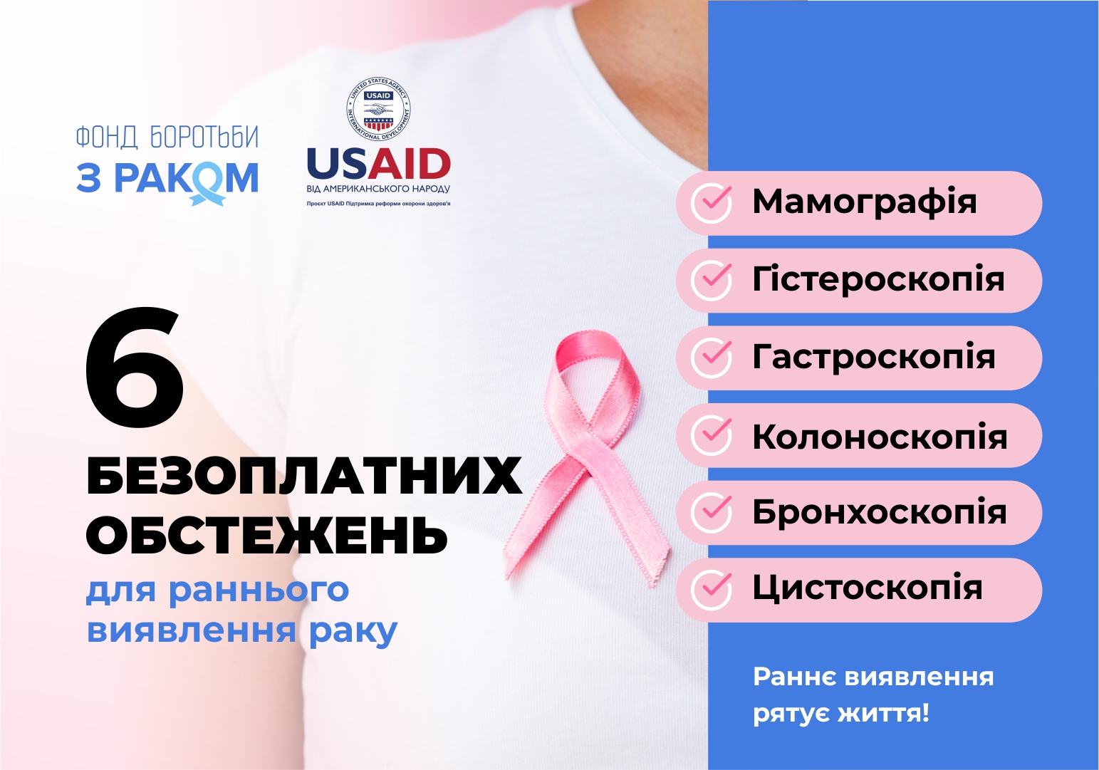 Успішність лікування онкологічних захворювань залежить від вчасності їхнього виявлення. Аби вчасно виявляти передракові хвороби або принаймні рак на ранніх стадіях, для українців та українок доступні безоплатні скринінгові обстеження для раннього виявлення раку.