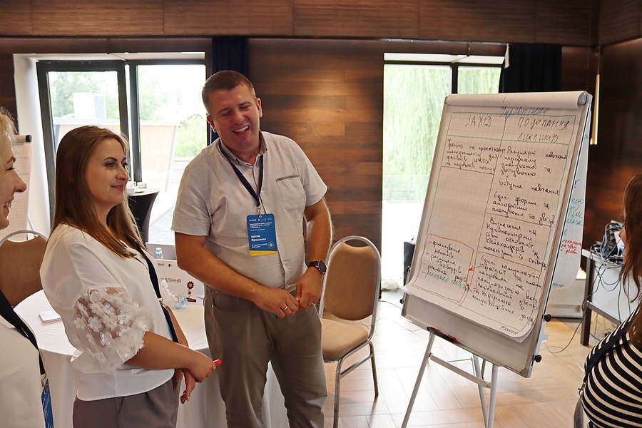 Також у програмі зустрічі була робота в групах, де активно обговорювалися питання, що і завдяки чому вдалося реалізувати та які аспекти діяльності поки не спрацьовують. А під час роботи так званого «Світового кафе» напрацювання жваво обговорювалися всіма учасниками заходу.