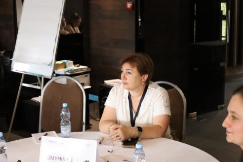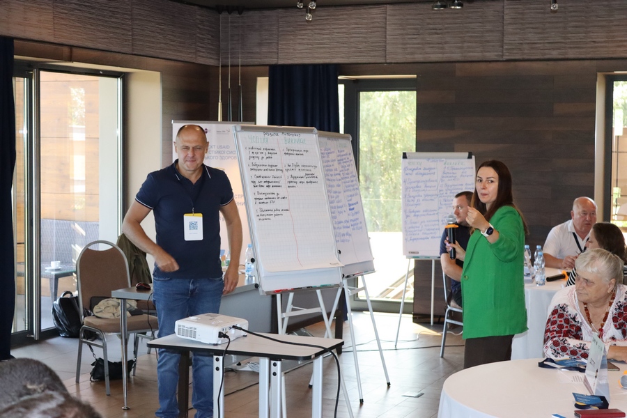 Протягом зустрічі спікери – фахівчиня Проєкту з управління програмами у сфері первинної медико-санітарної допомоги Тетяна Балтян та фахівчиня з організаційного розвитку інституцій громадського здоров’я Олена Теряєва – провели пленарні сесії щодо методології аналізу під час дій та розповіли про роботу Проєкту в області у розрізі концепції здорових громад.