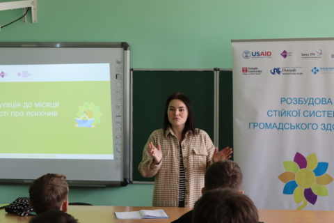 Програма візиту була доволі насиченою, адже окрім медиків у поїздці взяла участь і координатор з психічного здоров’я в Чернігівській області від проекту USAID «Розбудова стійкої системи громадського здоров’я» Вікторія Перепелиця, яка провела психоедукаційну лекцію про психічне здоров’я серед учнів 10-11 класів Батуринської ЗОШ І-ІІІ ступенів. Її презентація безпосередньо пов’язана із проведенням Тижня та Дня ментального здоров’я в Україні.