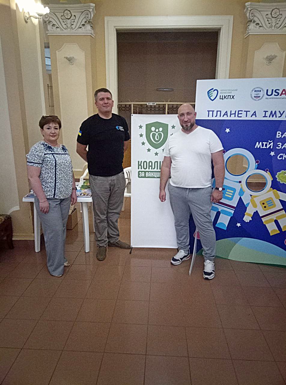 У фойе культурного закладу було розгорнуто просвітницьку презентацію щодо популяризації профілактичних щеплень : заступник генерального директора ДУ «Чернігівський обласний центр контролю та профілактики хвороб» Артем Ярошенко, завідувач відділу імунопрофілактики установи Олександр Бубирь, а також керівниця ГС «Коаліція за Вакцинацію» Ніна Макарова, спілкуючись із відвідувачами марафону, пояснювали переваги убезпечення від інфекційних хвороб шляхом вакцинації, поширювали відповідні наочні друковані матеріали та запрошували батьків і дітей до фотозони.