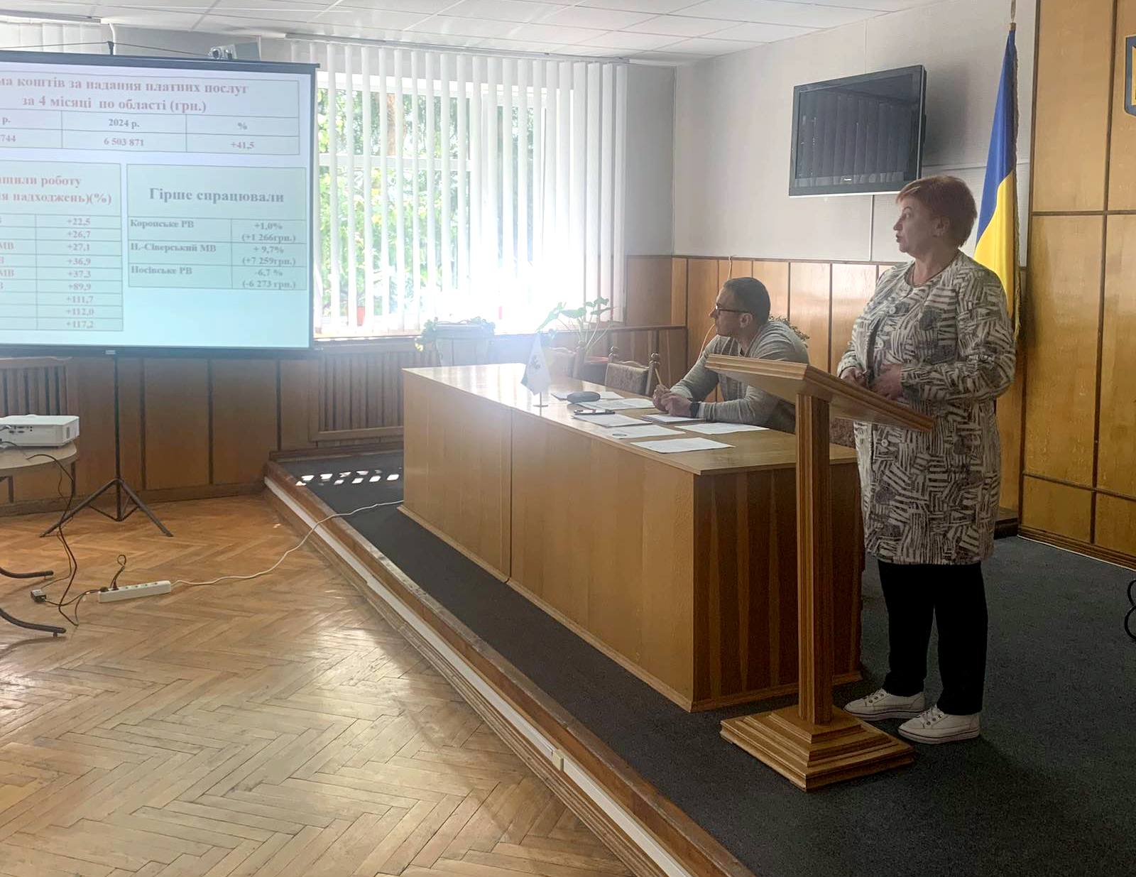 Заступниця генерального директора Тетяна Наливайко акцетувала увагу спеціалістів на активізації роботи по профілактиці ботулізму, заходах по підтримці реформи шкільного харчування та наданню рекомендацій по організації здорового харчування, а також проаналізувала роботу по наданню установою послуг на договірній основі.