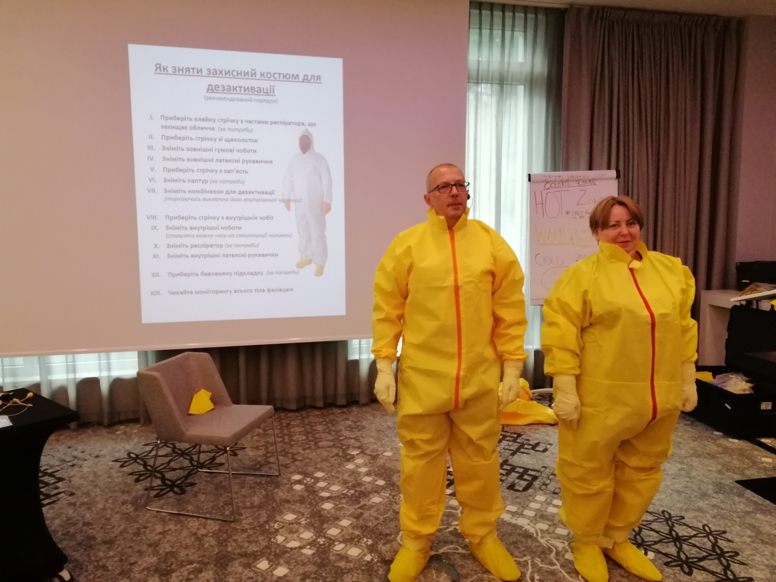 Для учасників семінару були проведені навчання по одяганню та зніманню захисного костюма LION MultiThreat94. Виконані практичні вправи по дезактивації за допомогою рукавиць FiberTect. Проведені навчання та виконані практичні вправи по використанню детектора ХБРЯ загроз ChemProX та дозиметру DMC 3000. Учасники тренінгу складали план дій при виникненні надзвичайної ситуації з розглядом медичних аспектів ХБРЯ подій.
