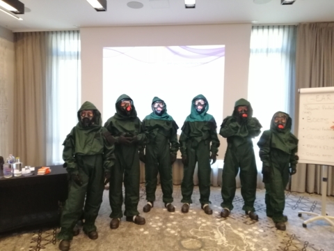 Крім теоретичних питань, розглянутих на семінарі (основні хімічні, біологічні та радіологічні загрози, шляхи їх попадання в організм та шляхи захисту, види та правила проведення дезактивації, види ЗІЗ, ознайомлення зі знаннями щодо навчальних практик та методик навчання і реагування на ХБРЯ загрози), були проведені практичні заняття.